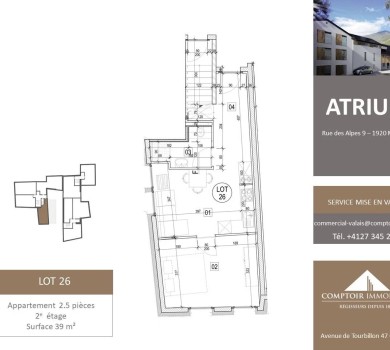 Add to favorite Remove from favorites CHF 1'040.- / month Magnificent 2.5-room apartment for rent in the Atrium residence in Martigny Apartment 2.5 rooms 39 m2 Martigny, Valais Discover