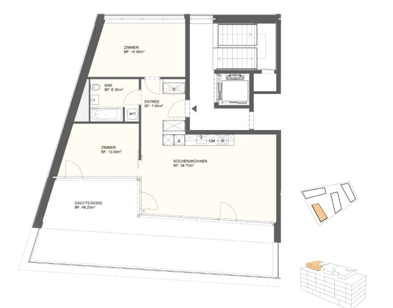 – Dachterasse (48m2), auf der Sie die schönen Tage genießen können.