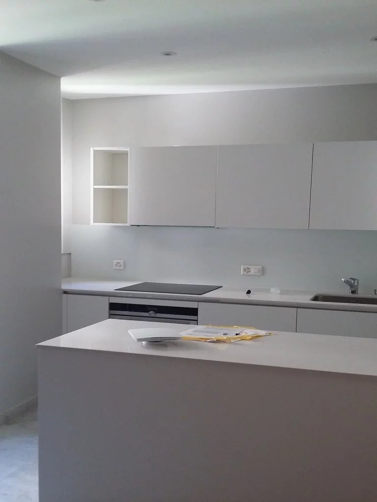 Fully equipped kitchen with hood, induction hob, oven, fridge-freezer, dishwasher. Decorative fireplace, 2 bedrooms, bathroom with bathtub, washbasin and WC and washing machine pre-installation, separate WC with washbasin, entrance hall with storage cupboard and EI 30 fireproof landing door.
