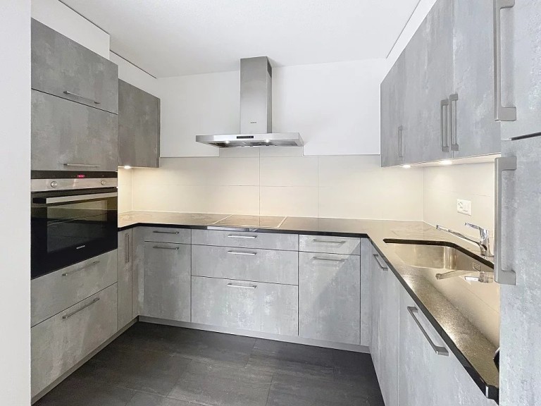 Beautiful 4.5-room apartment on the 2nd floor of a recent building, approx. 87.6m2, located in a green environment with mountain views.
