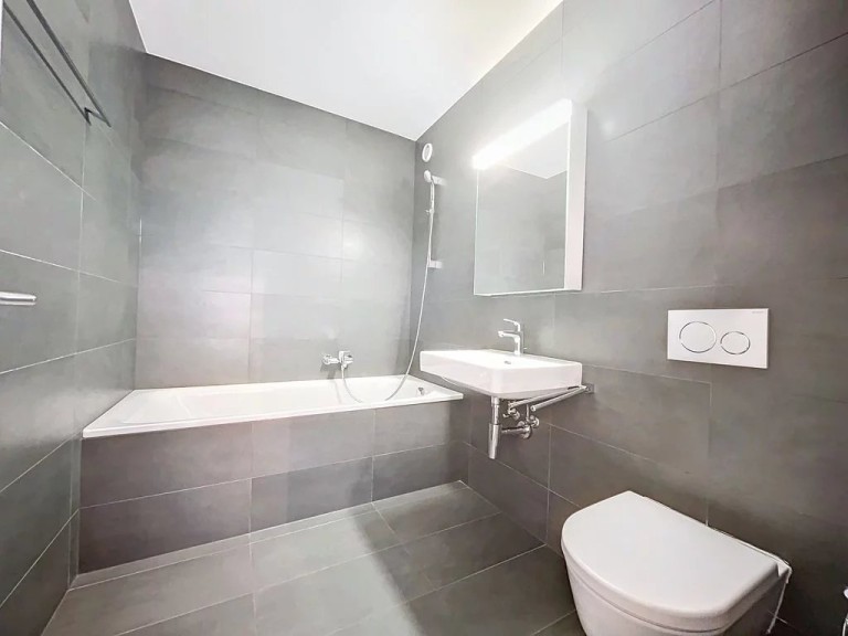 – A bathroom with bathtub
