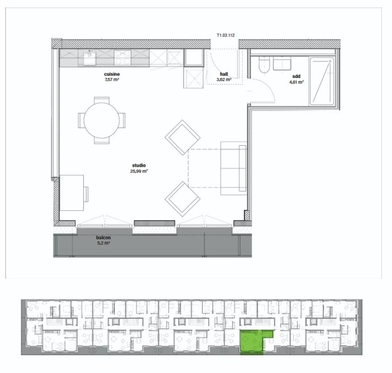 42m2 studio apartment in the new Cour de Gare district of Sion