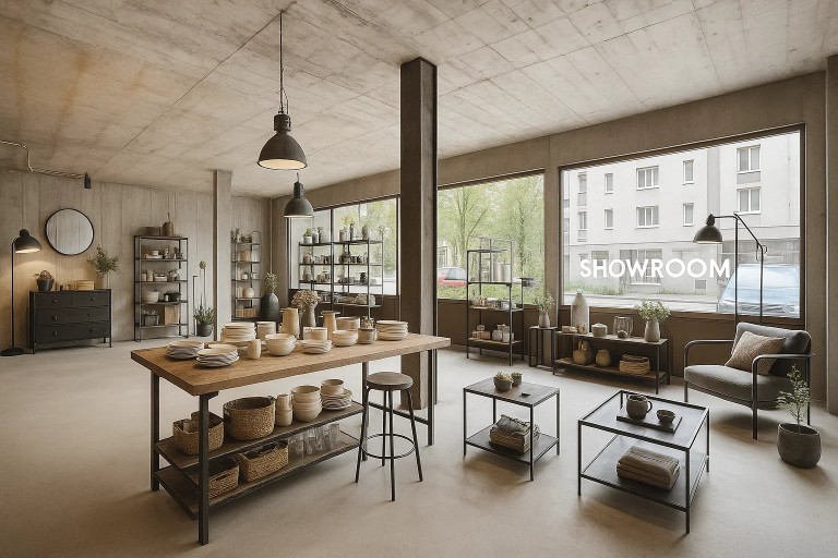 Mit 106,5m² und einer Raumhöhe von 3,56m bietet sie maximale Gestaltungsfreiheit – ideal für Showroom, Geschäft, Büro und vieles mehr.