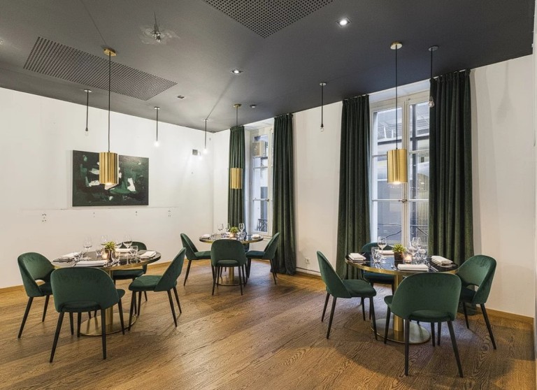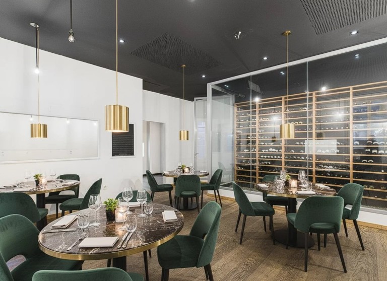 Room n°3 with an impressive full-height, air-conditioned, glazed wine cellar, bringing a unique cachet to the space