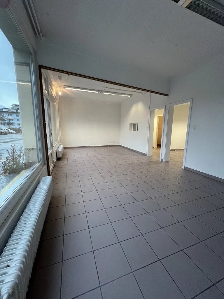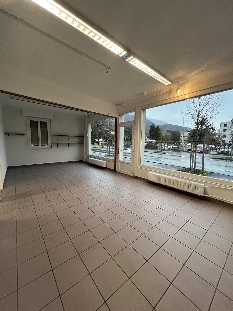 This surface with showcases and 2 parking spaces included on the first floor of a small building, located just a few minutes’ walk from Monthey town center and train station, comprises: