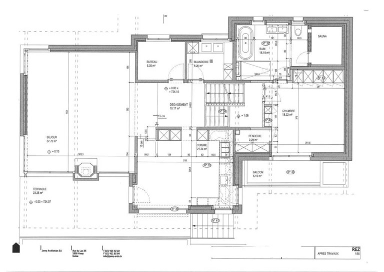 – Kitchen opening onto dining room (21 m2) with access to balcony and terrace