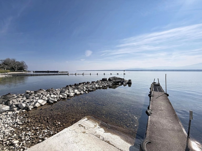 Master bedroom with dressing room, en-suite bathroom, and corner balcony 18sqm with lake and montain Alpes view.