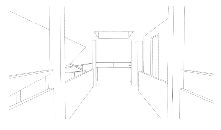 Entrance is via the center of the space, under a mezzanine accessible via an internal staircase.