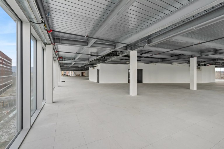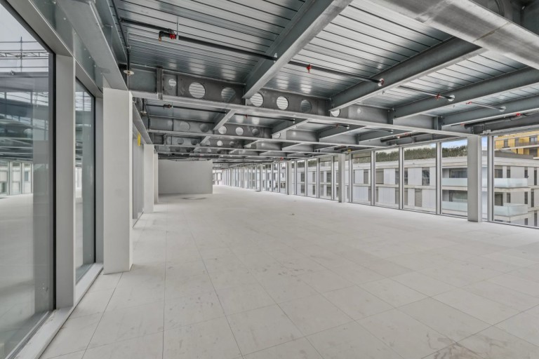 The offices benefit from excellent natural lighting thanks to an all-glass facade and a central atrium, offering a modern and pleasant working environment.
