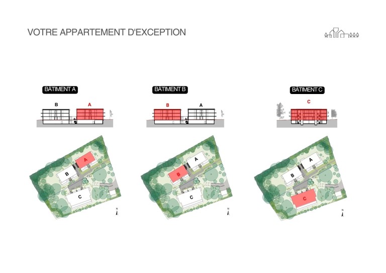 The CLOS DES CHARMES is an innovative and daring project, set in absolute calm in 8,000 m² of parkland. With its resolutely contemporary architecture, this residence comprises three buildings perfectly integrated into their environment, offering 28 apartments from 3 to 6 rooms.