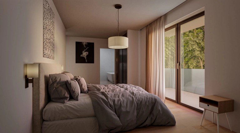 The flowing lines and skilfully orchestrated volumes offer generous, deep terraces, balconies and gardens, ideally exposed and turned towards nature. Wisely oriented, the apartments boast top-quality amenities, confirming the residence’s unique character. Their brightness is guaranteed by large windows. Kitchens open onto living rooms, where the layout invites sharing and conviviality, optimizing volumes and creating a feeling of space and freedom.