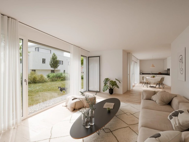 Designed to Minergie standards, the building guarantees excellent living comfort while meeting current energy efficiency requirements, notably through underfloor heating powered by renewable energies (geothermal and solar).