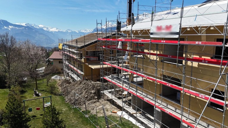 Construction has begun on this project, comprising two buildings with a total of eight apartments, ranging from 2.5 to 5.5 rooms. Mainly built from Swiss timber frames and equipped with heat pumps and photovoltaic panels, these buildings meet current environmental requirements. All feature triple glazing for optimum sound and heat insulation.