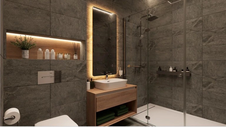 Night space: a 19 m² master bedroom with private bathroom. A second 11 m² bedroom, offering comfort and flexibility. A bathroom with bathtub and washbasin completes the space.