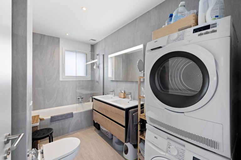 An indoor parking space (CHF 35,000 extra) is already pre-equipped for the installation of an electric charging station. A cellar, included in the sale price, ideally completes this property.