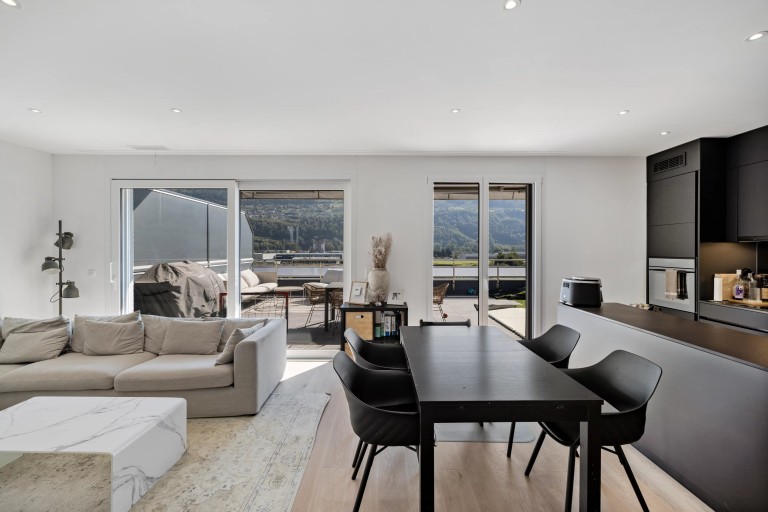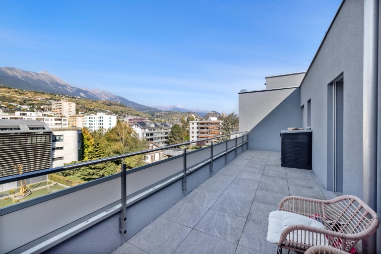Located on the top floor of a recent Minergie-certified residence, this 3.5-room apartment combines modern comfort, energy efficiency and quality of life. Set in a quiet neighborhood close to all amenities, it enjoys a sought-after location just a stone’s throw from downtown Sion.