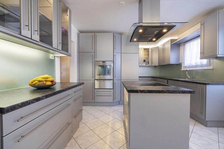The apartment has three bedrooms, two shower/w.c. rooms and a private laundry room integrated into the kitchen. Numerous spacious wall cupboards provide practical storage space.