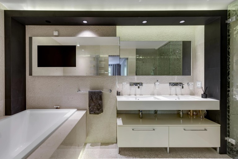 The apartment features three en suite bedrooms, each with dressing room and private bathroom, and a study.