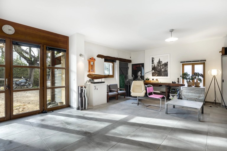 Ground floor (approx. 100 m²): a multi-purpose space currently used as a workshop with office and storage rooms, this space has all the technical expectations (water, drains) to be transformed. Ideal for a liberal profession (doctor, architect, therapist) wishing to set up a home office with its own entrance. There is also the possibility of creating an independent apartment to generate rental income or to accommodate a relative. Or, quite naturally, an extension to the house for a games room or large home cinema.