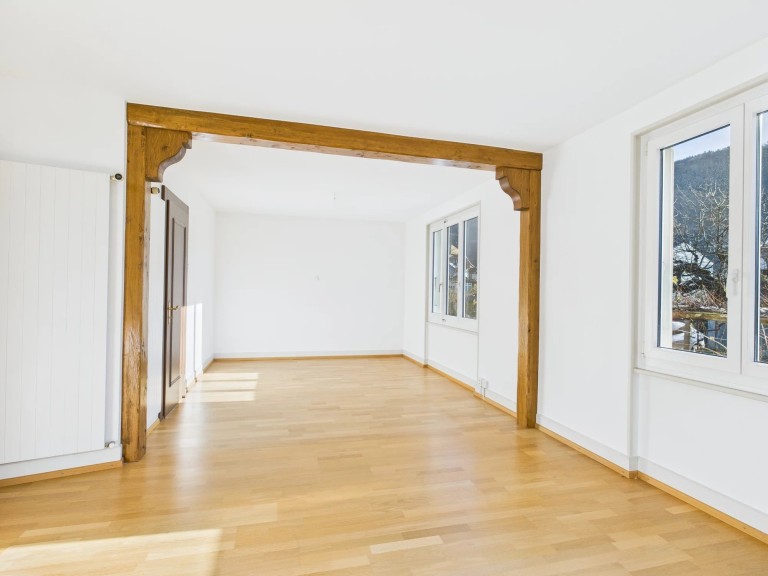 The property’s main assets include its location in a quiet, residential area, its immediate proximity to the train station and amenities, its dead-end access, its large, usable plot and its absolutely exceptional mountain views.