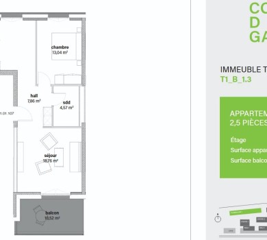 Beau 2.5 pièces récent, dans le quartier Cour de Gare à Sion