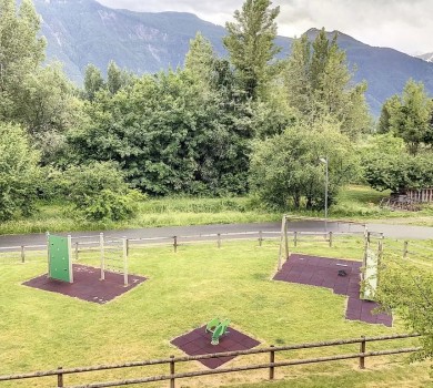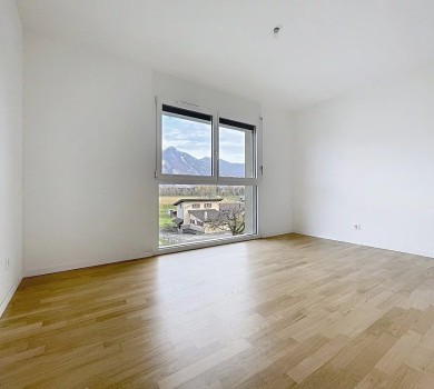 Bel appartement traversant de 4.5 pièces au 2ème étage d’un immeuble récent d’environ 87.6m2, situé dans un environnement verdoyant avec vue sur les montagnes.