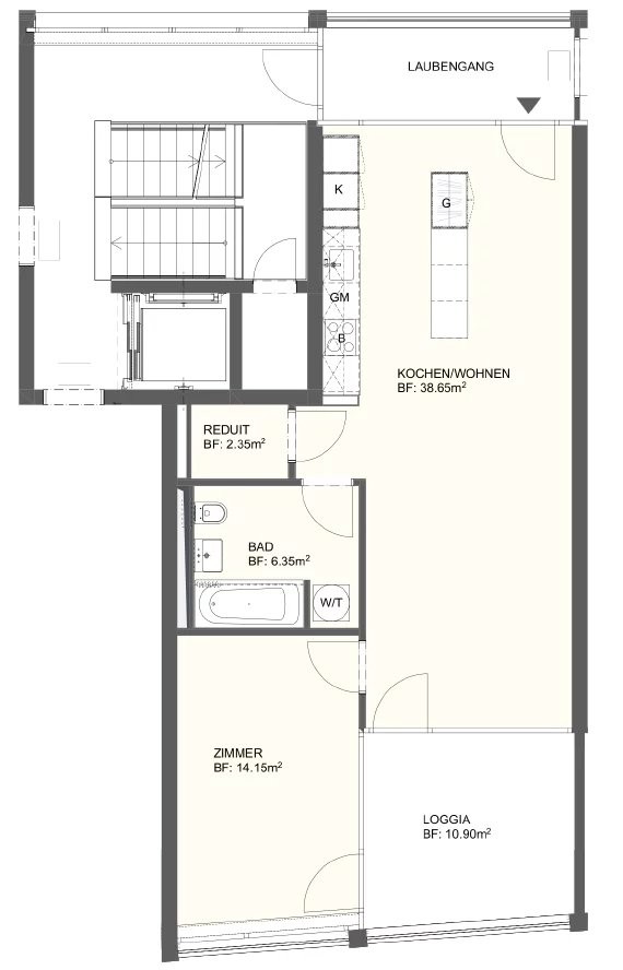 Diese Wohnung ist etwa 61,5 m² groß und setzt sich wie folgt zusammen: