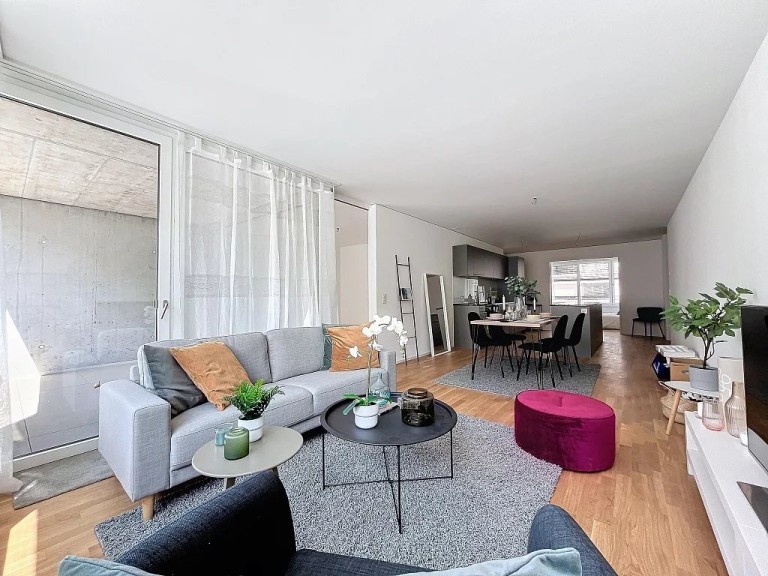 Zu vermieten: geräumige, neue 2,5-Zimmer-Wohnung in Visp, am Baretstrasse 19. Der Hauptbahnhof und zahlreiche Einkaufsmöglichkeiten sind zu Fuß in 12 Minuten erreichbar.