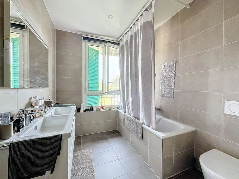 Les pièces d’eau comportent une salle de bains avec double vasque, une salle de douche et un wc visiteurs avec dégagement pour branchement colonne de lavage.