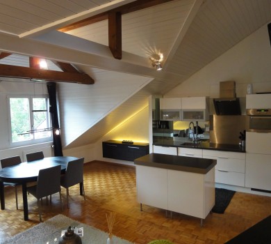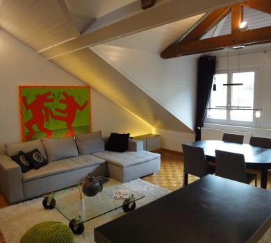 Cet appartement traversant d’une surface d’env. 94 m2 est idéalement situé, à proximité des commerces, des transports publics, du lac et de la gare. Il se compose d’un hall d’entrée avec placards, grand salon-salle à manger, cuisine entièrement équipée, 1 WC douche, dégagement nuit avec 2 chambres à coucher, 1 salle de bains avec WC. Cave.