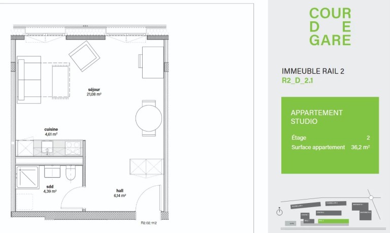 Studio récent au 2ème étage à louer à Sion – Quartier Cour de Gare