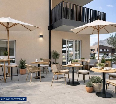 A louer à Aigle, arcade aménagée avec terrasse pour pause-café de quartier