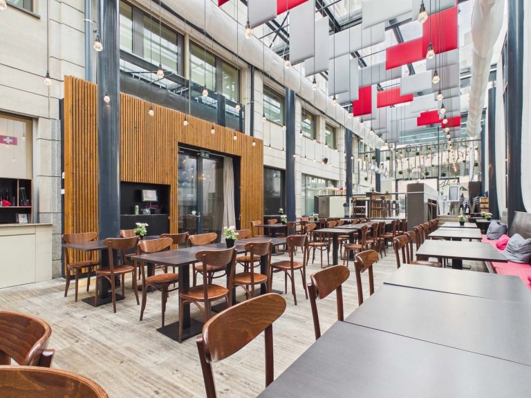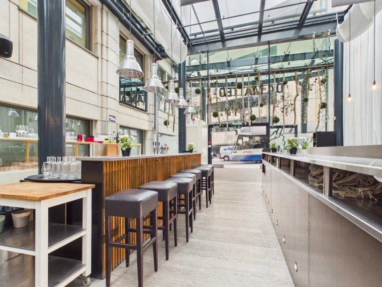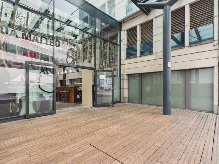 • Grande arcade lumineuse de 247 m², avec belle hauteur sous-plafond garnie par une verrière facilement aménageable pour tout type de concept culinaire (restaurant, café, take-away, etc.)