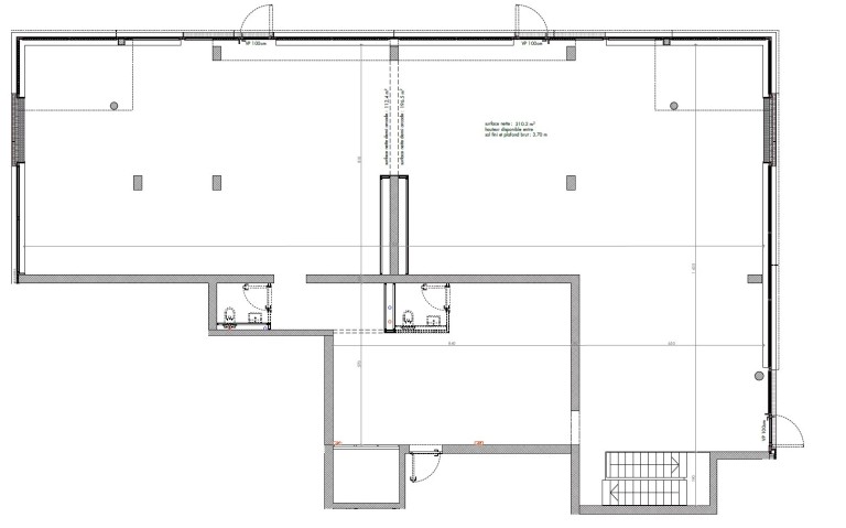 – 100 m² de surface au 1er sous-sol reliée par un escalier interne, en sus du loyer