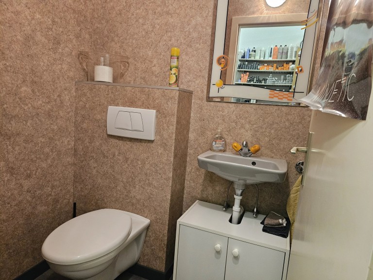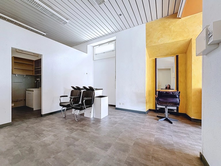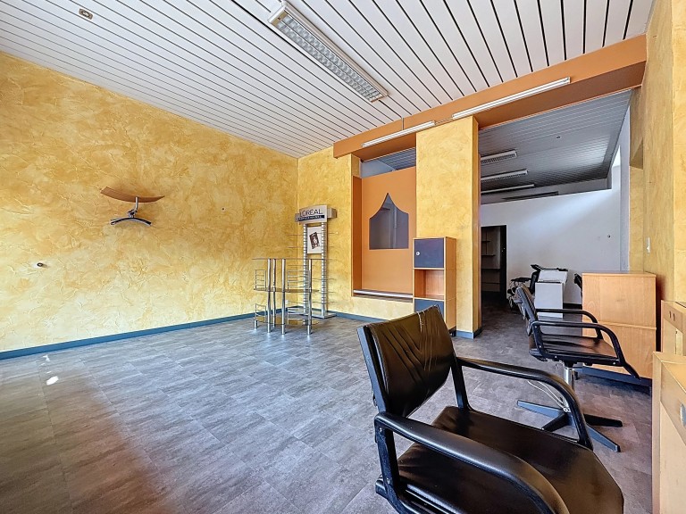 Il est actuellement équipé pour une activité de salon de coiffure (bacs de lavage, fauteuils, etc.).