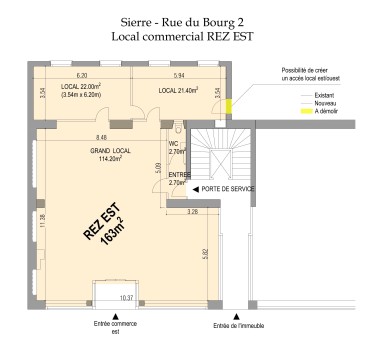 Située à 5 minutes à pied du centre-ville de Sierre, la surface bénéficie d’un excellent emplacement et d’une belle visibilité.