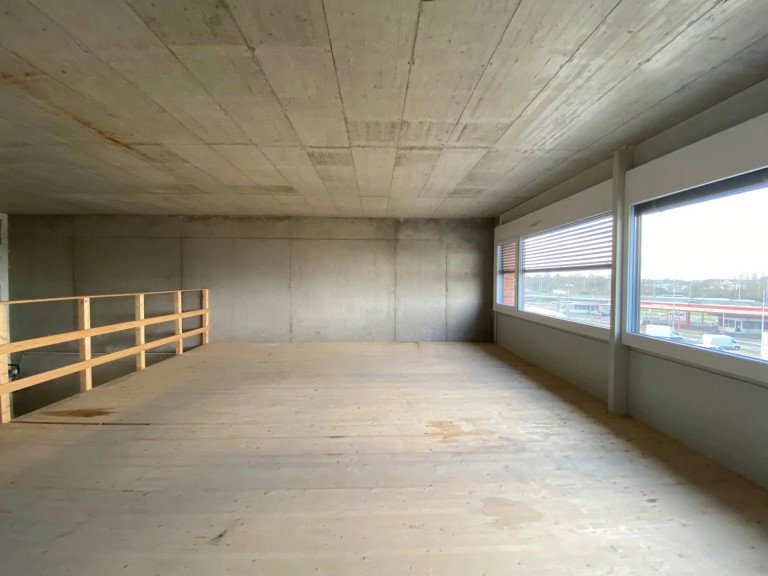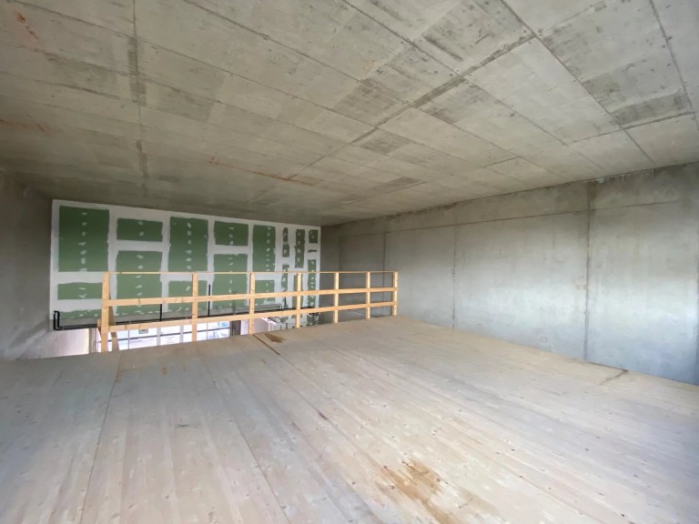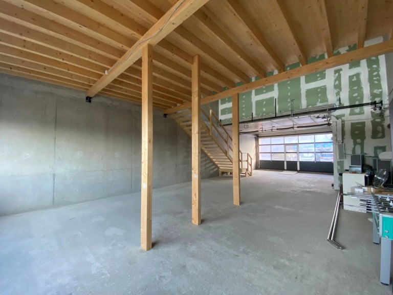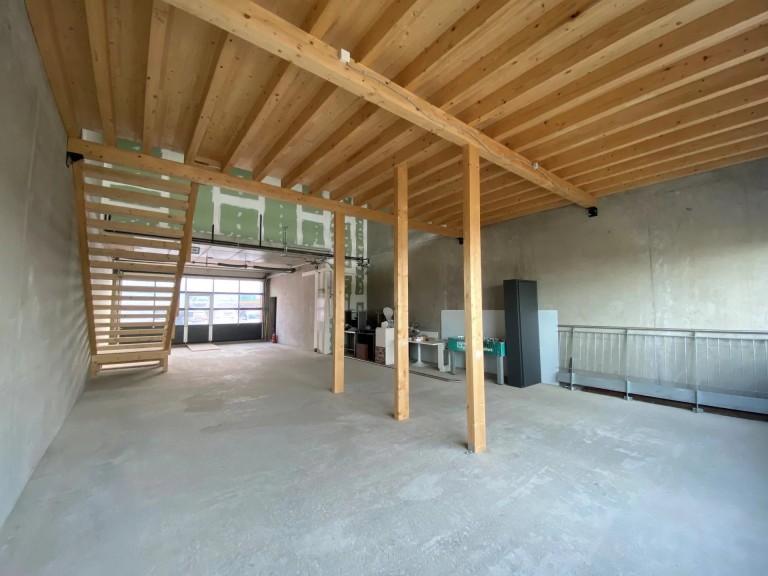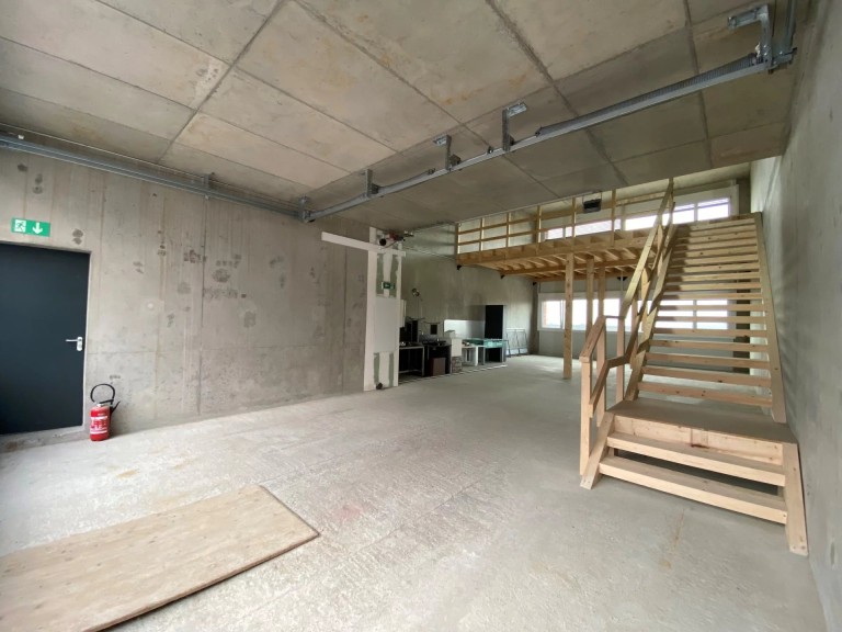 Le bâtiment propose un atelier de 124 m² livré brut avec une mezzanine de 51 m².