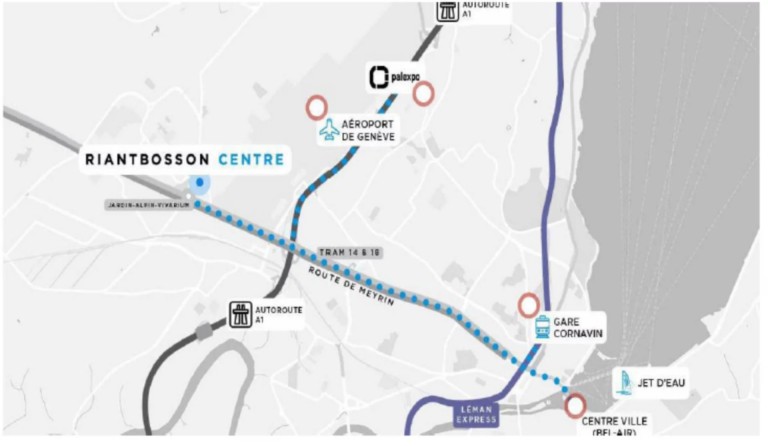 De part sa position, sa proximité de l’aéroport International de Genève Cointrin et sa liaison directe avec le centre-ville (tram 14 et 18), le centre Riantbosson bénéficie d’un emplacement de choix.