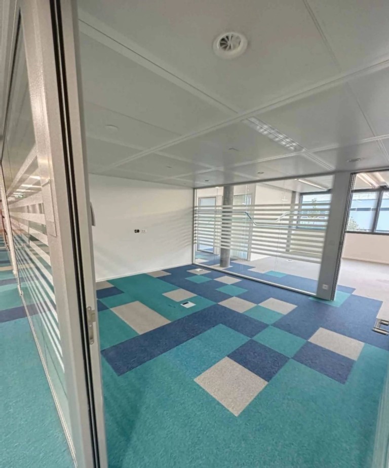 Le bâtiment, Minergie, propose une surface aménagée, lumineuse et traversante de 687 m² au 2ème étage.