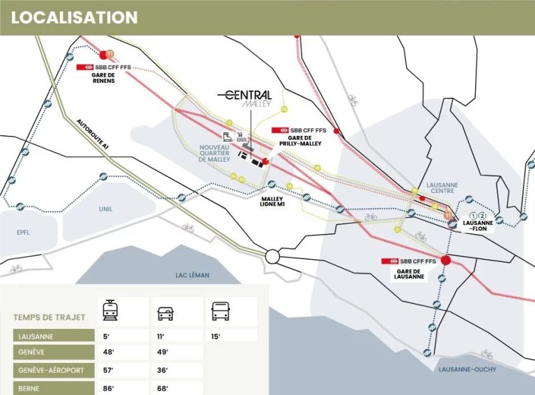 Central Malley est un projet de développement urbain situé au sud de la gare RER de Prilly-Malley, dans l’Ouest lausannois. Ce futur éco-quartier vise à créer un espace moderne et durable, combinant des zones résidentielles, des bureaux, des commerces, et des espaces verts. Conçu pour répondre aux besoins des entreprises et des habitants, Central Malley est pensé comme un lieu où se mêlent travail, loisirs et nature.