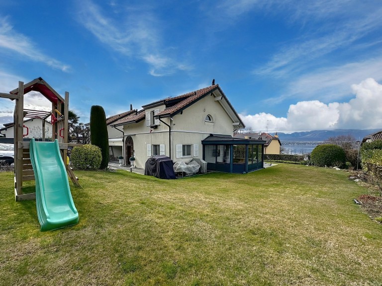 Cette villa située à Anières, jouit d’un emplacement privilégié avec une magnifique vue sur le lac et la campagne environnante.