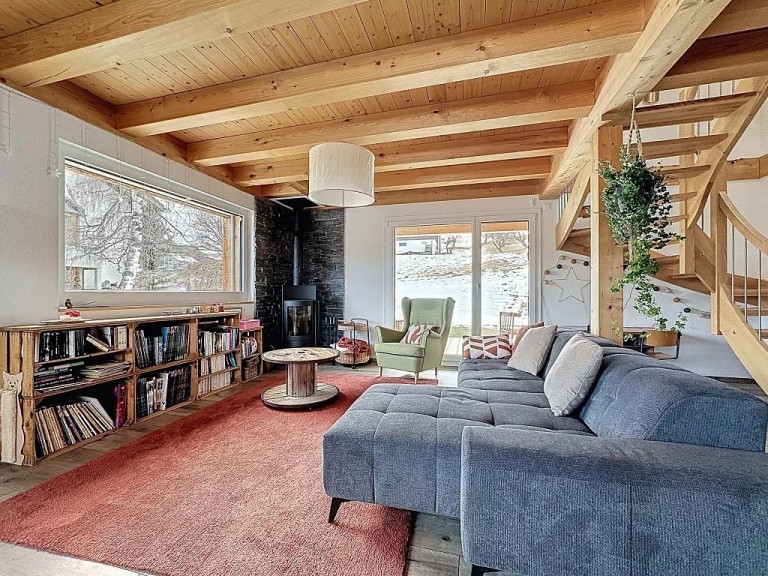 – Grand séjour lumineux avec poêle à bois.
