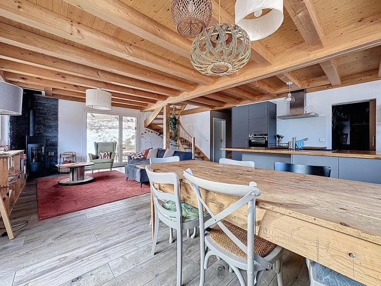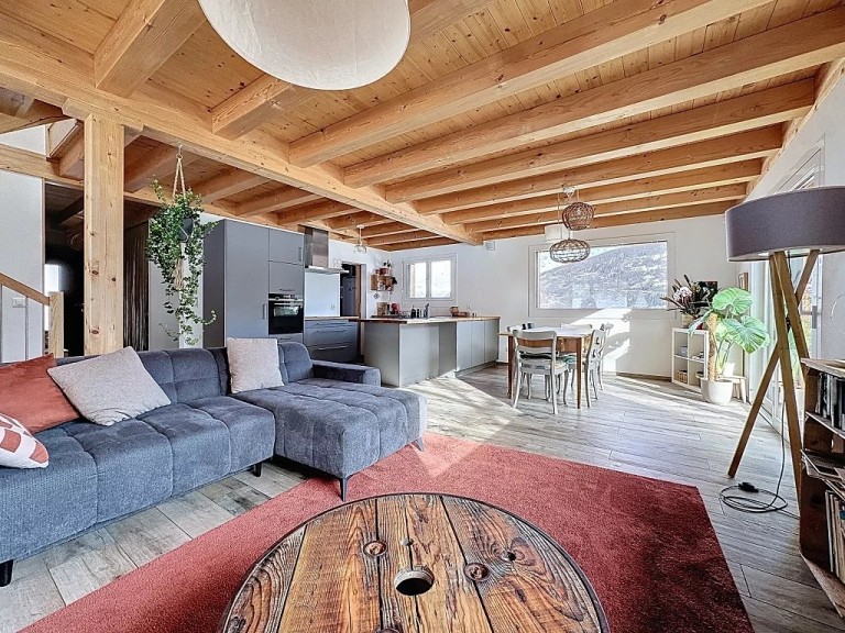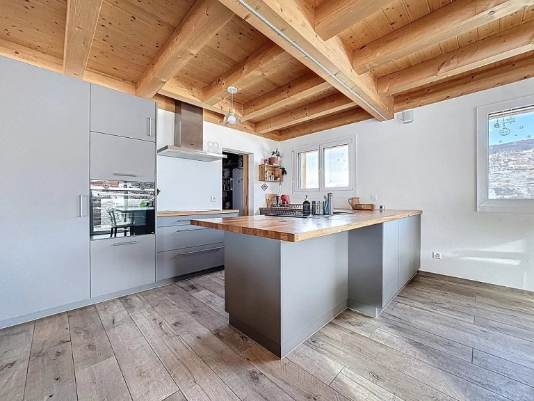 Située dans un cadre paisible sur la commune de Vex, cette spacieuse villa offre des volumes généreux, un confort moderne et de très beaux espaces extérieurs. Idéale pour une famille, elle bénéficie d’une construction récente, d’équipements performants et d’une excellente efficacité énergétique. Elle est disposée de la sorte: