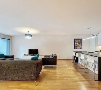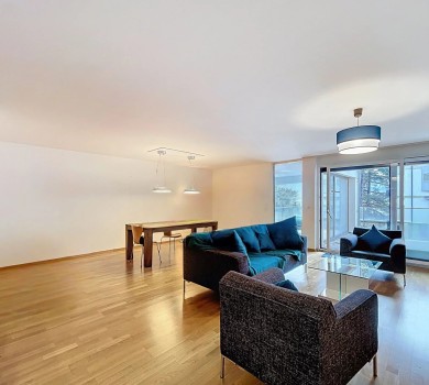 Appartement lumineux avec vaste pièce de vie, balcon et deux parkings