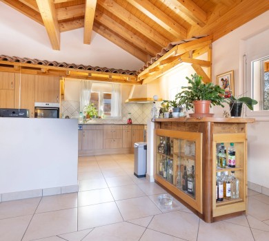 L’entrée spacieuse mène à de grands espaces de réception, créant une atmosphère accueillante et ouverte sur la nature environnante. Le salon et la salle à manger, conçus pour recevoir avec élégance, s’ouvrent sur la terrasse, idéale pour des moments de détente ou de convivialité.