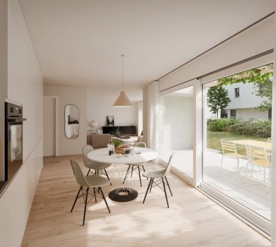 La résidence s’inscrit dans un concept architectural soigné, organisé autour d’un vaste espace central paysager favorisant la convivialité et la qualité de vie. Les logements offrent des surfaces généreuses et des espaces de vie lumineux, avec un accès à un extérieur privatif, terrasse, balcon ou jardin, selon la typologie.