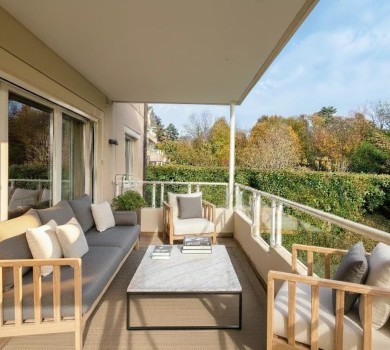 L’appartement bénéficie de trois balcons totalisant près de 60 m², offrant chacun une vue panoramique ouest sur les montagnes et la nature environnante.