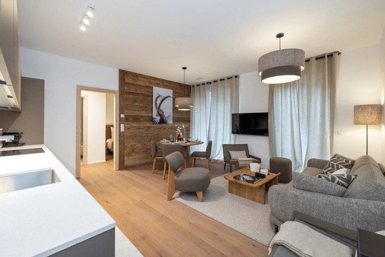 La résidence propose une gamme complète de services hôteliers : ski valet, conciergerie, room service et spa. Le tout dans une architecture contemporaine sublimée par le charme montagnard.
