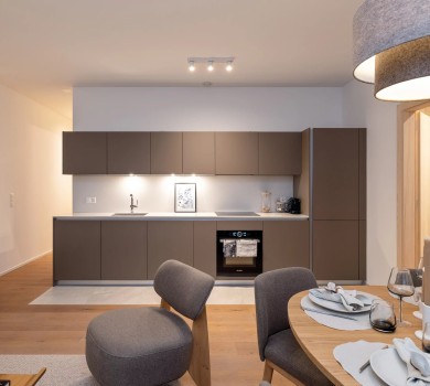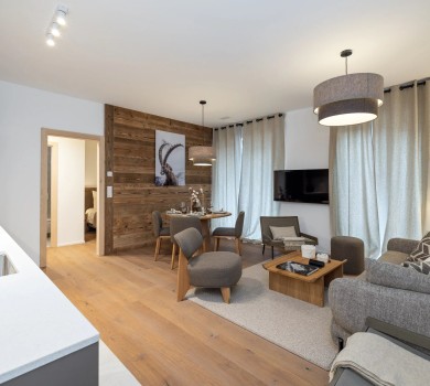 Le séjour s’ouvre ensuite sur un vaste espace de vie regroupant cuisine, salle à manger et salon. Dès l’entrée, la lumière naturelle inonde la pièce et la vue entièrement dégagée attire immédiatement le regard. De larges baies vitrées prolongent cet espace vers la terrasse sud de 60 m², idéale pour profiter de l’ensoleillement optimal tout au long de l’année.