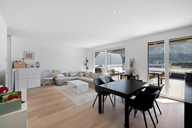 Situé au dernier étage d’une résidence récente et labellisée Minergie, cet appartement de 3.5 pièces allie confort moderne, efficacité énergétique et qualité de vie. Implanté dans un quartier calme et à proximité immédiate des commodités, il bénéficie d’un emplacement recherché à quelques pas du centre-ville de Sion.
